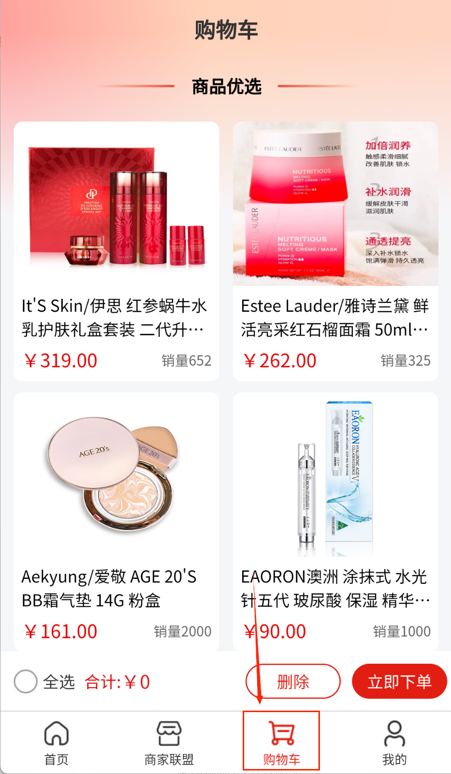 2、便捷的购物流程支持一键加购和批量结算,节省购物时间。商家联盟功能整合优质商家资源,提供更多选择。