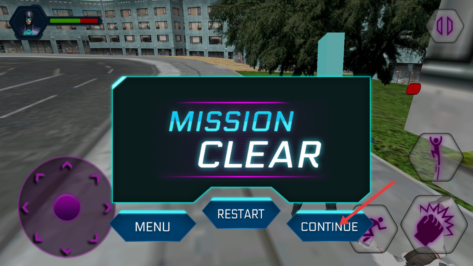 4、通关后出现【MISSION-CLEAR】提示-点击【CONTINUE】按钮,进入下一段游戏内容。