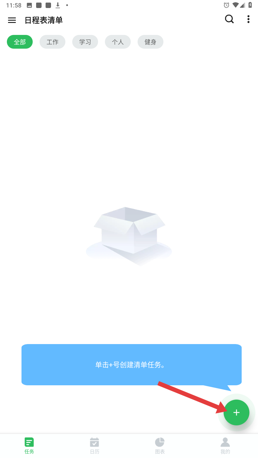 1、在【日程表清单】页,点右下角【 】,开启创建新任务流程,添加日程。