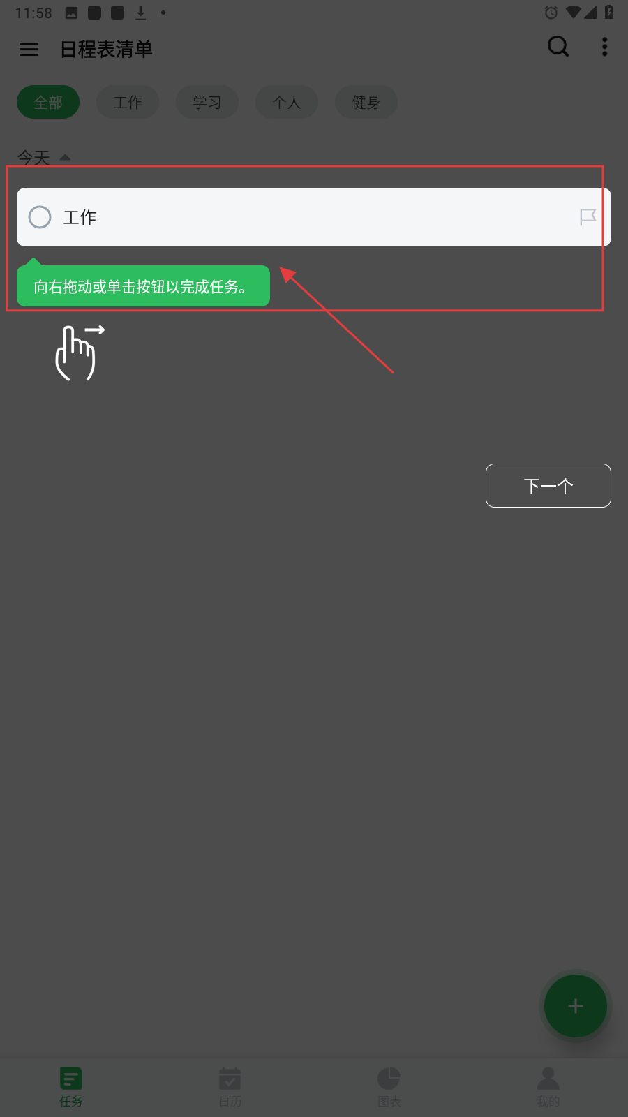 4、向右拖动任务或点击按钮,标记任务为完成,管理日程进度。
