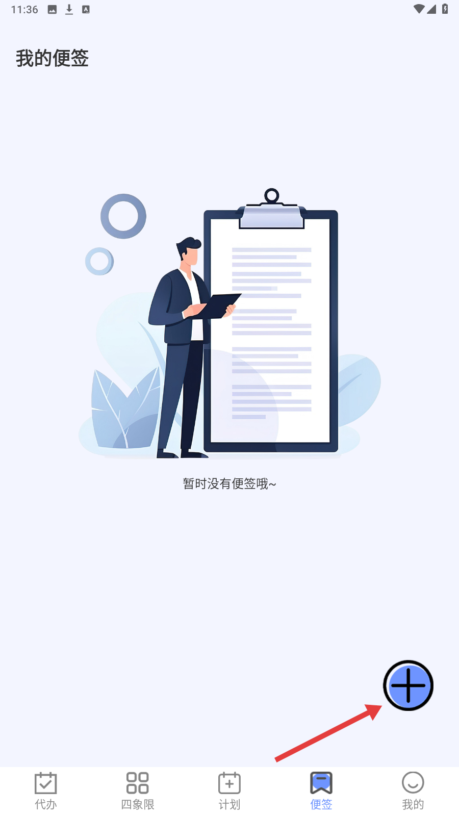 3、切换到【便签】页,点右下角【 】,进入便签编辑,记录临时想法。