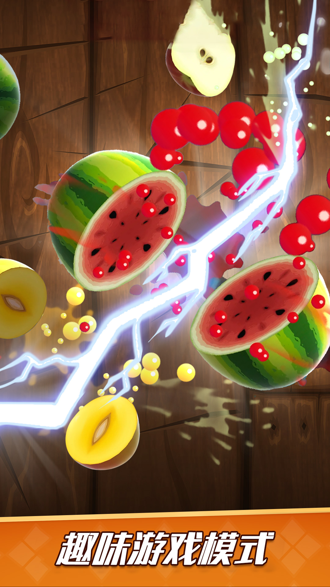 1、把不同的水果切成一排,你会得到更高的分数,分数越高,你的奖励就会越多。