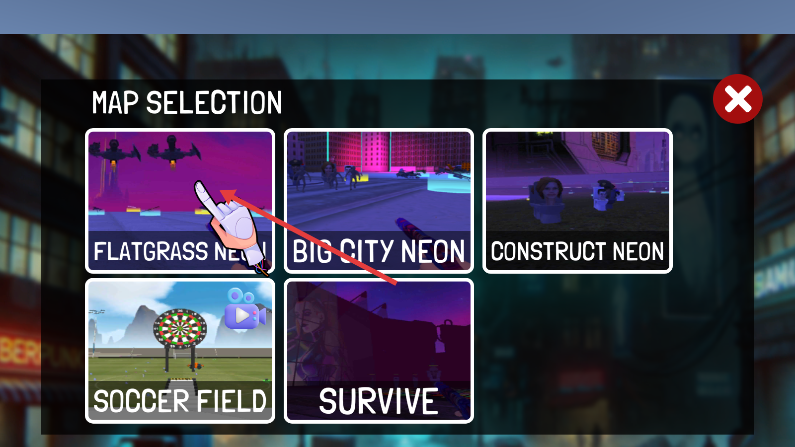1、地图页选【FLATGRASSNEON】-进入霓虹平原,开启科幻射击战。