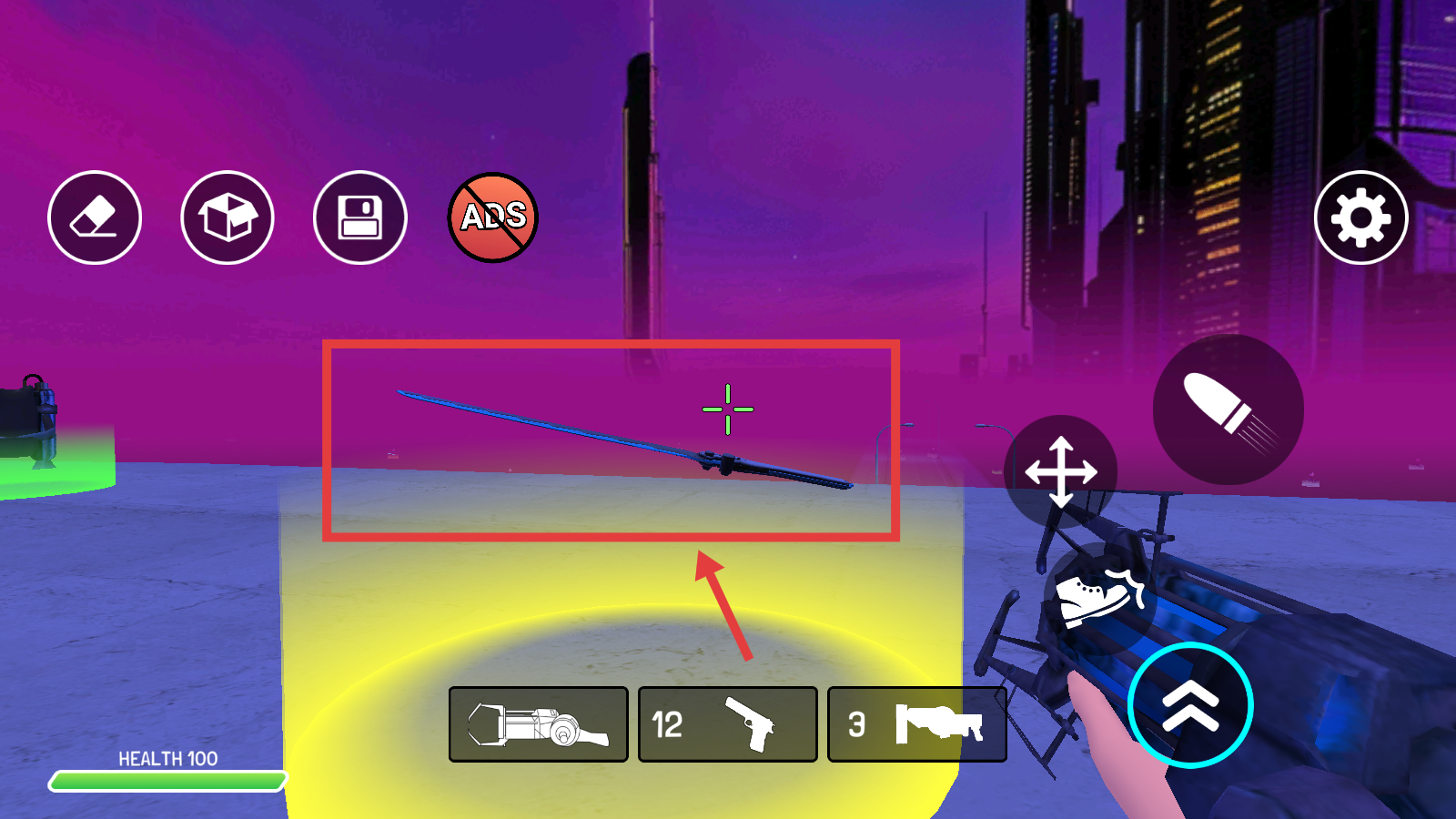 2、右侧按键射击-下方切换武器(如拾取蓝色长剑),优先攻击“马桶人”敌人。