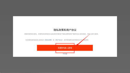 1、点击“同意并进入游戏”按钮,同意隐私政策和用户协议后进入主界面。