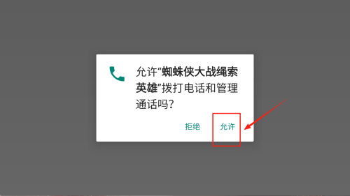 2、在权限弹窗中选择“允许”,授予游戏拨打电话和管理通话的权限。
