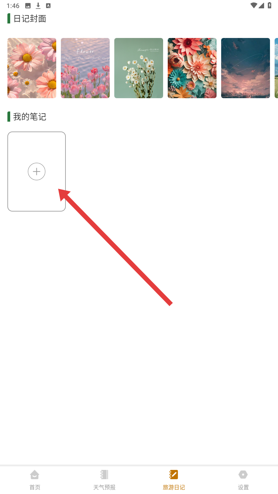 4、切换到【旅游日记】,点【我的笔记】下【 】,创建旅行记录笔记。