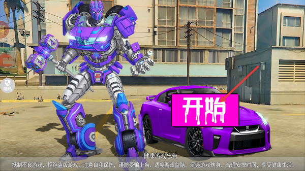 1、进入游戏首步点击【开始】,操控机甲或汽车开启城市冒险,熟悉初始界面功能。