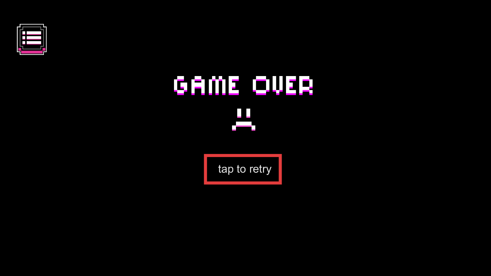 4、若出现【GAME-OVER】,点击【tap-to-retry】重新挑战,复盘操作失误,积累通关技巧。
