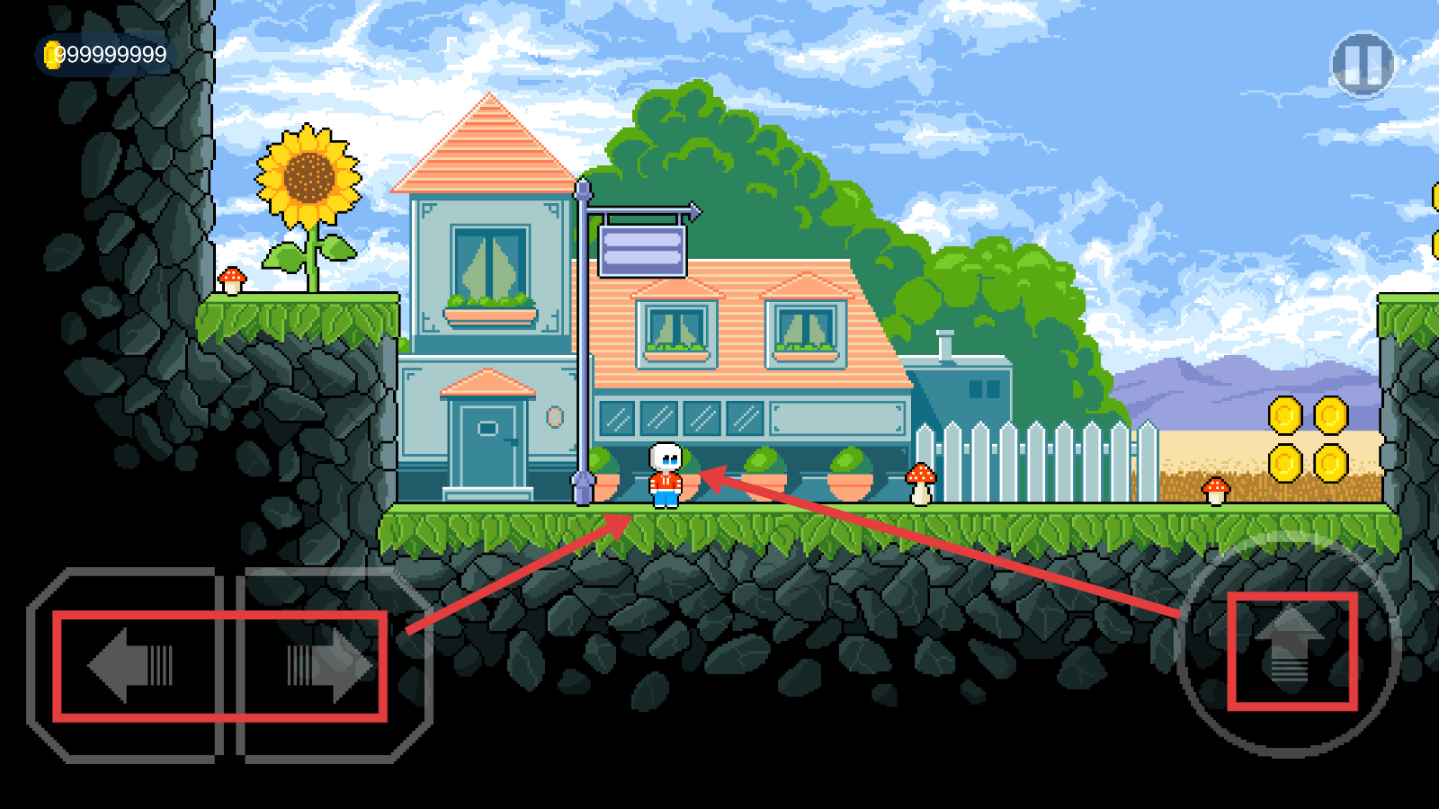 2、游戏中利用左下【左右箭头】控制移动,右下【跳跃键】跨越障碍,熟悉操作提升流畅度。