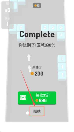 4、在游戏结束后,点击“接受3倍”领取额外奖励,然后点击“继续”开始新一轮游戏。