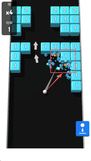 2、选择打击角度:观察砖块布局调整发射角度,力求最多次数打击砖块,提升砖块消除效率。