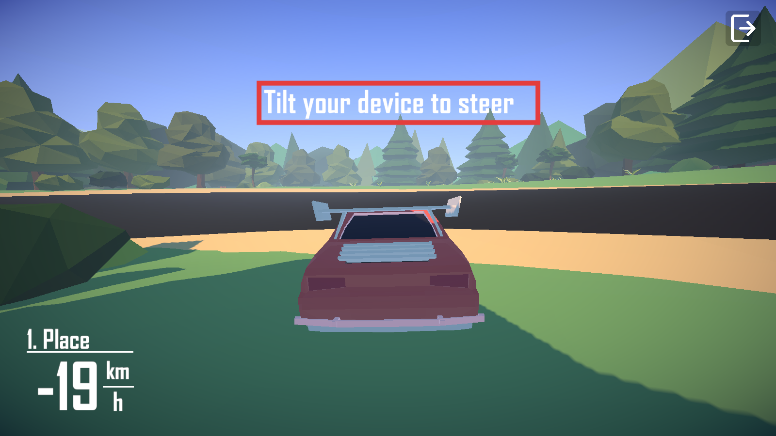 2、依据【Tilt-your-device-to-steer】提示,倾斜设备控制转向,同时关注左下角【-19-km/h】速度变化。
