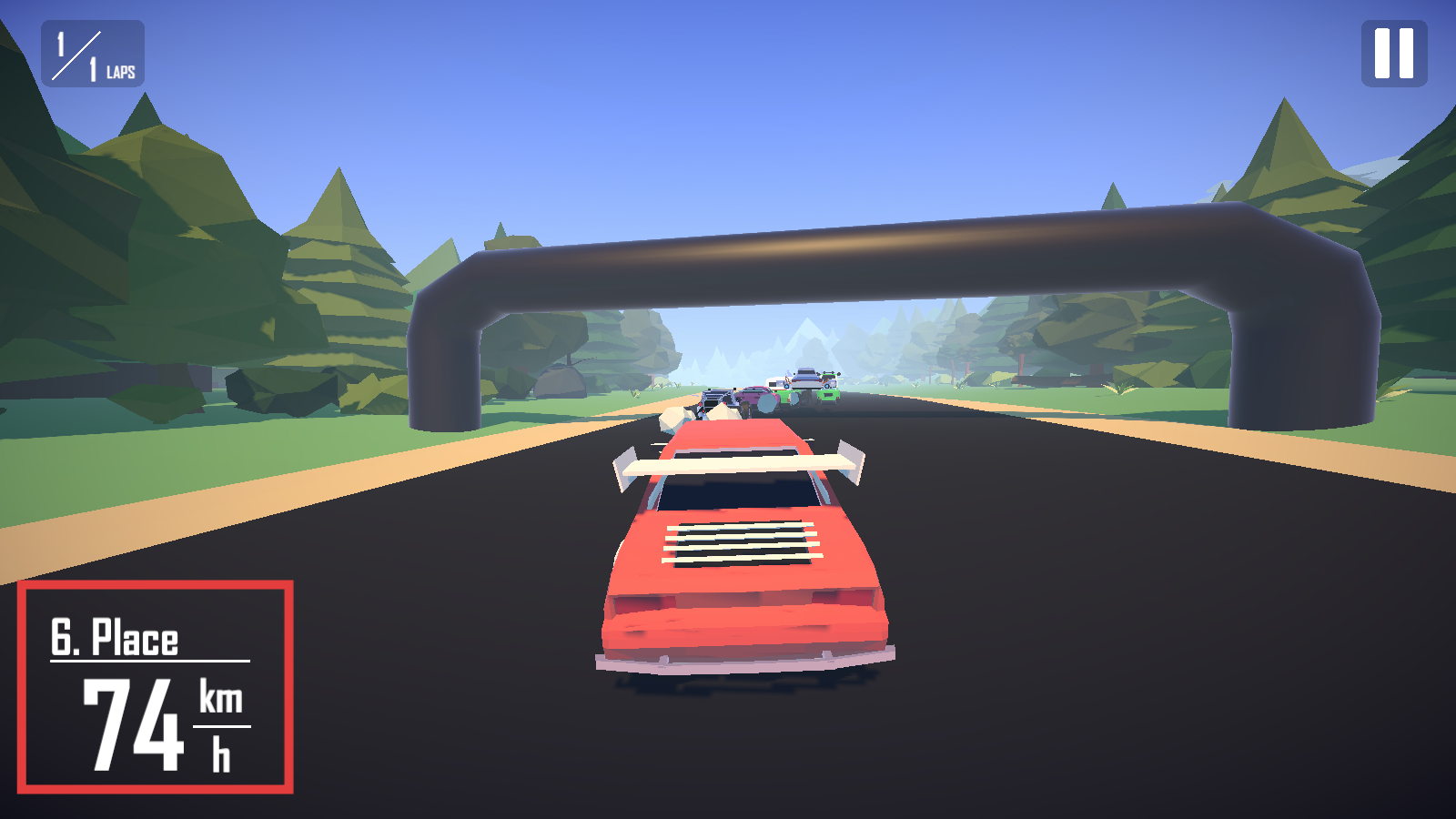 3、比赛中紧盯左下角【6.-Place】与【74-km/h】数据,借弯道加速,尝试超越前方车辆。