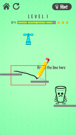 3、划线引导水流:在屏幕上划出线条,利用物理规则引导水流流向杯子,调整线条形状优化导水效率。
