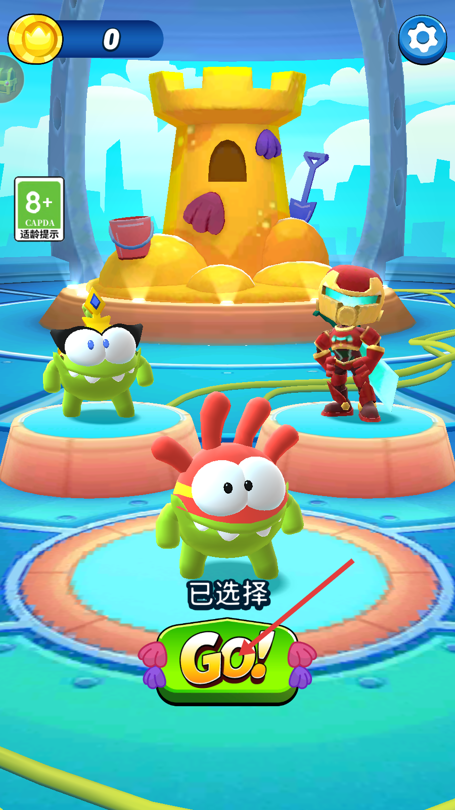 1、选好角色后,点击下方【GO!】按钮开启游戏,留意左侧【8 -CADPA适龄提示】。