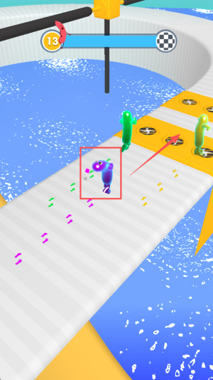 2、操控橡皮人跑酷:在水上及不同场景中操控橡皮人前进,通过简单操作躲避障碍、保持节奏,持续推进。
