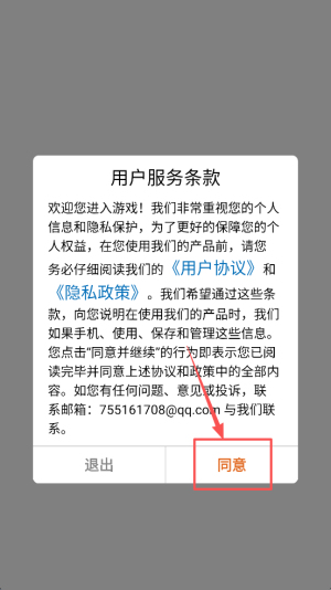 1、点击“同意”按钮,接受用户服务条款。