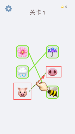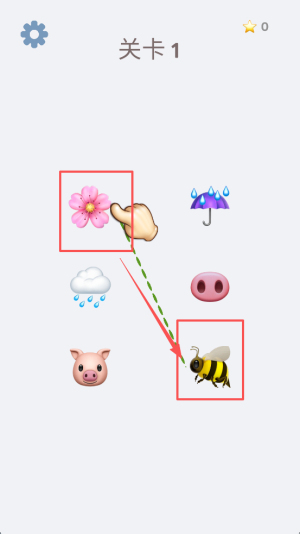 2、在关卡1中,将花朵拖动到蜜蜂,完成配对。