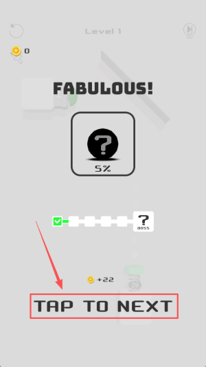 4、关卡完成后,点击“TAP TO NEXT”按钮,领取奖励并继续游戏。
