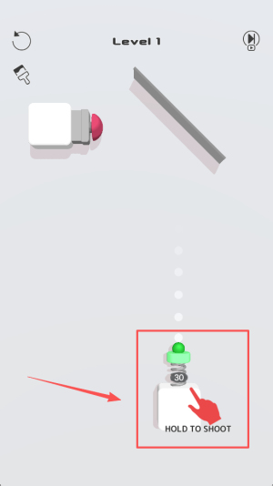 3、长按“HOLD TO SHOOT”按钮,发射子弹击中目标。