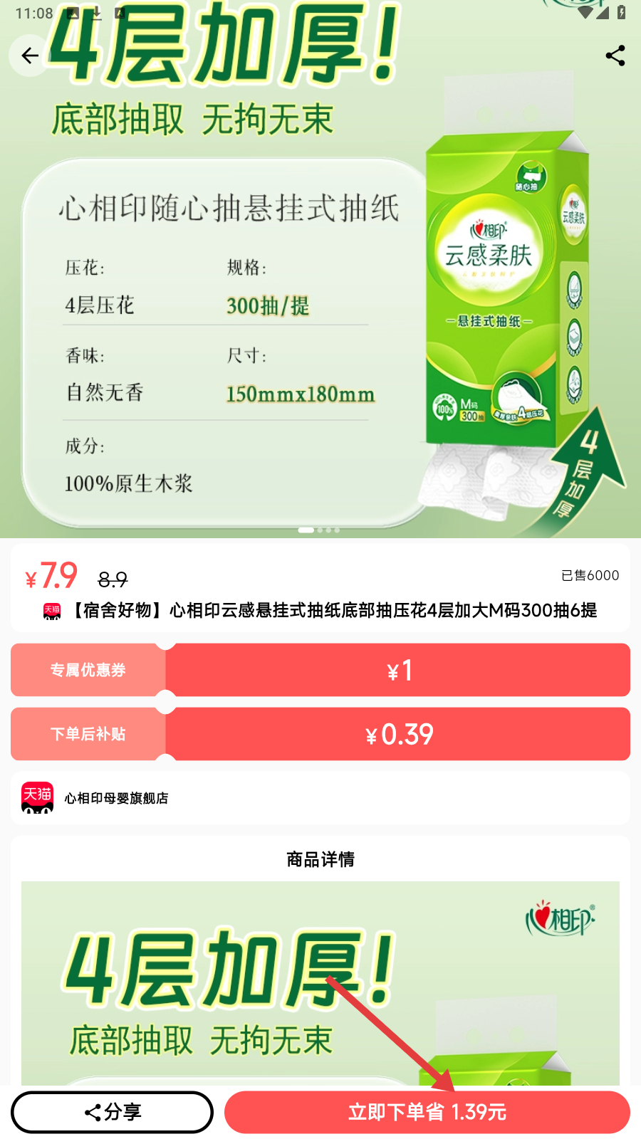 3、在商品列表,挑心仪心相印纸巾,进入详情页了解信息。