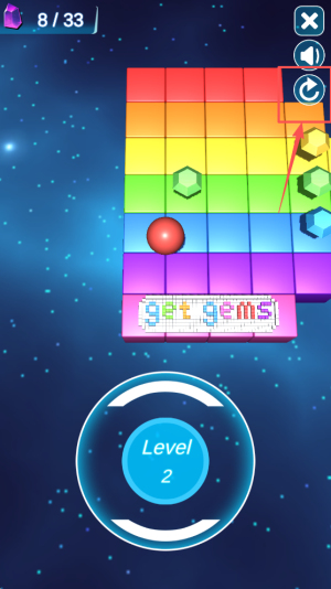 2、在游戏过程中,点击并拖动红色球体,避开障碍物并收集宝石。