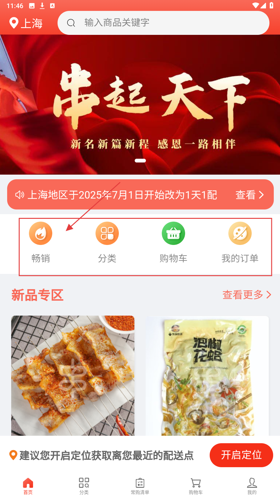 1、进入首页,点【畅销】看热门商品,快速了解平台主推的烧烤食材。
