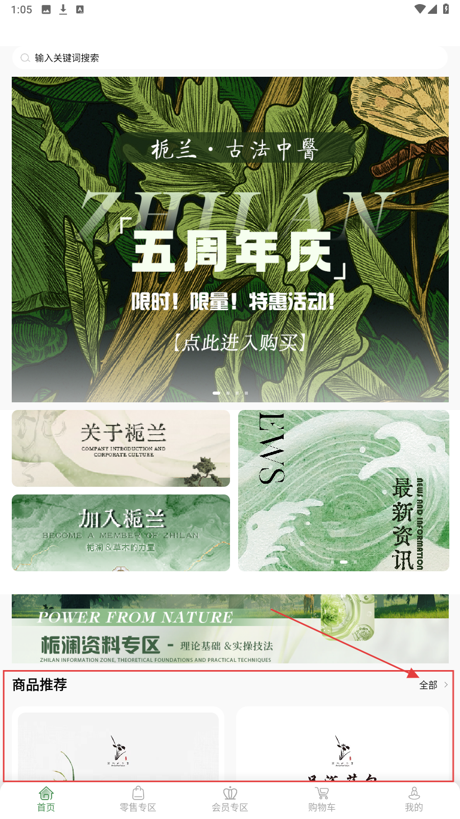 1、进入应用首页,点【商品推荐-全部】,浏览完整商品列表。