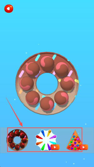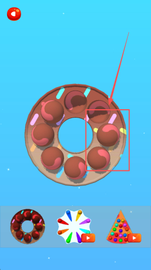 4、在甜甜圈上点击放置装饰物,完成制作。