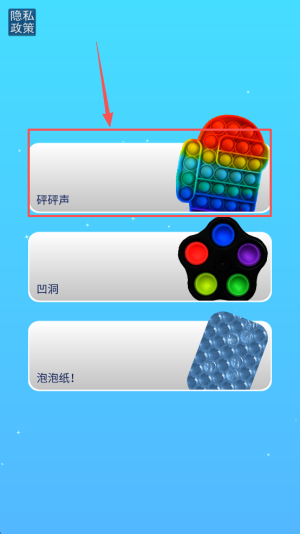 2、在“隐私政策”界面,选择一个选项,如“砰砰声”。