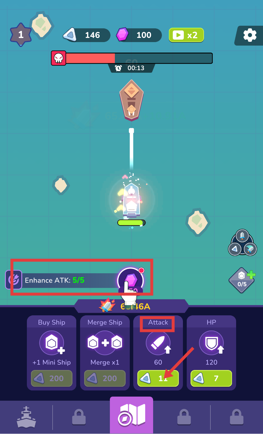 3、将【Enhance-ATK】叠满5/5,强化后猛点【Attack】输出,在限时内击溃敌方首领。