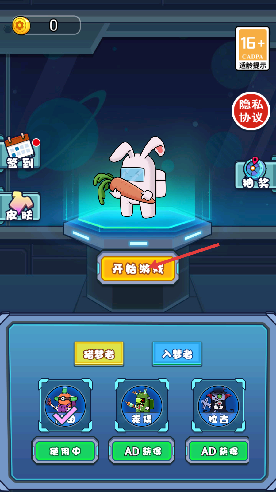 1、进入游戏点【开始游戏】,可选【猎梦者】或【入梦者】阵营,留意【16 -CADPA适龄提示】。