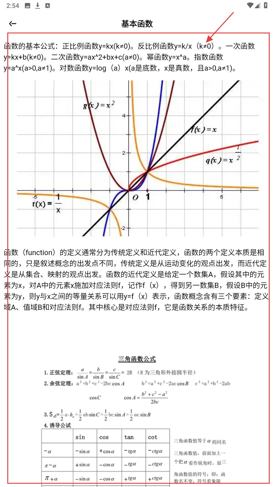 4、进【基本函数】详情,记正比例、反比例等公式,结合图像理解函数特征与规律。