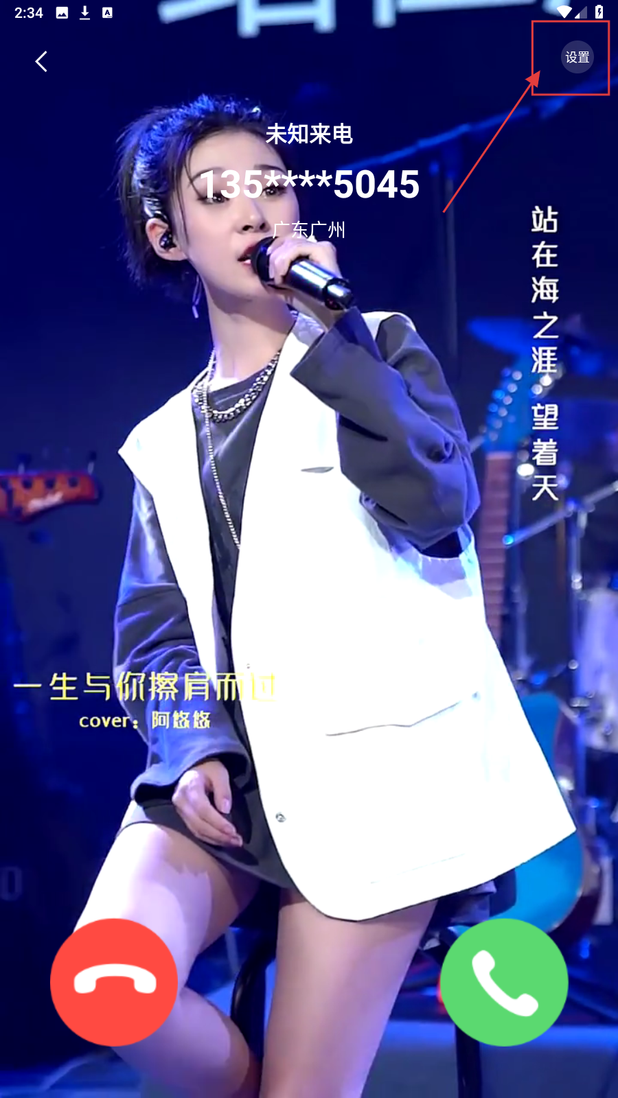 2、预览时,点右上角【设置】,即可设置为来电界面。