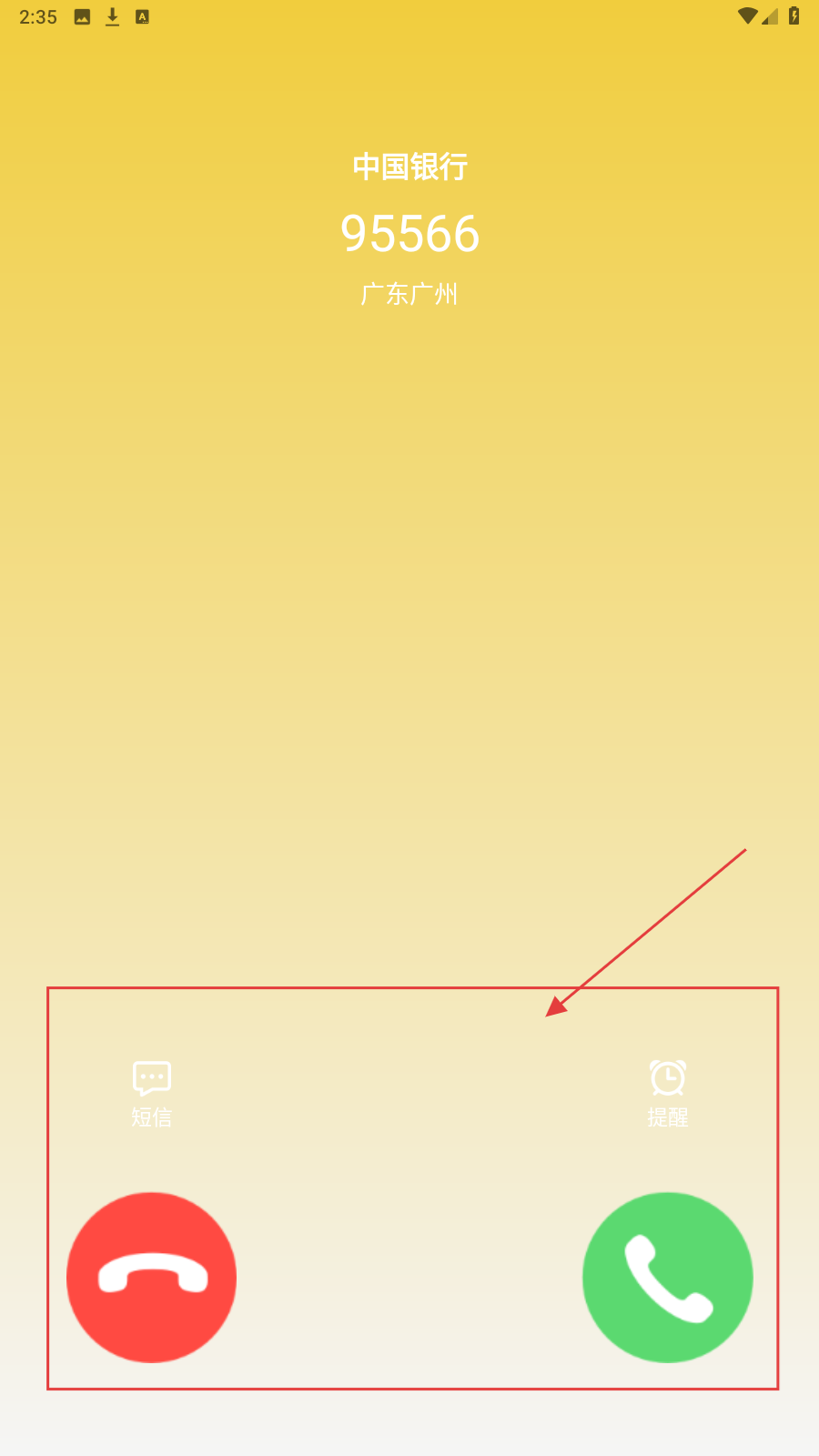 4、确认后,来电时会显示设置的效果,可接听或短信、提醒操作。