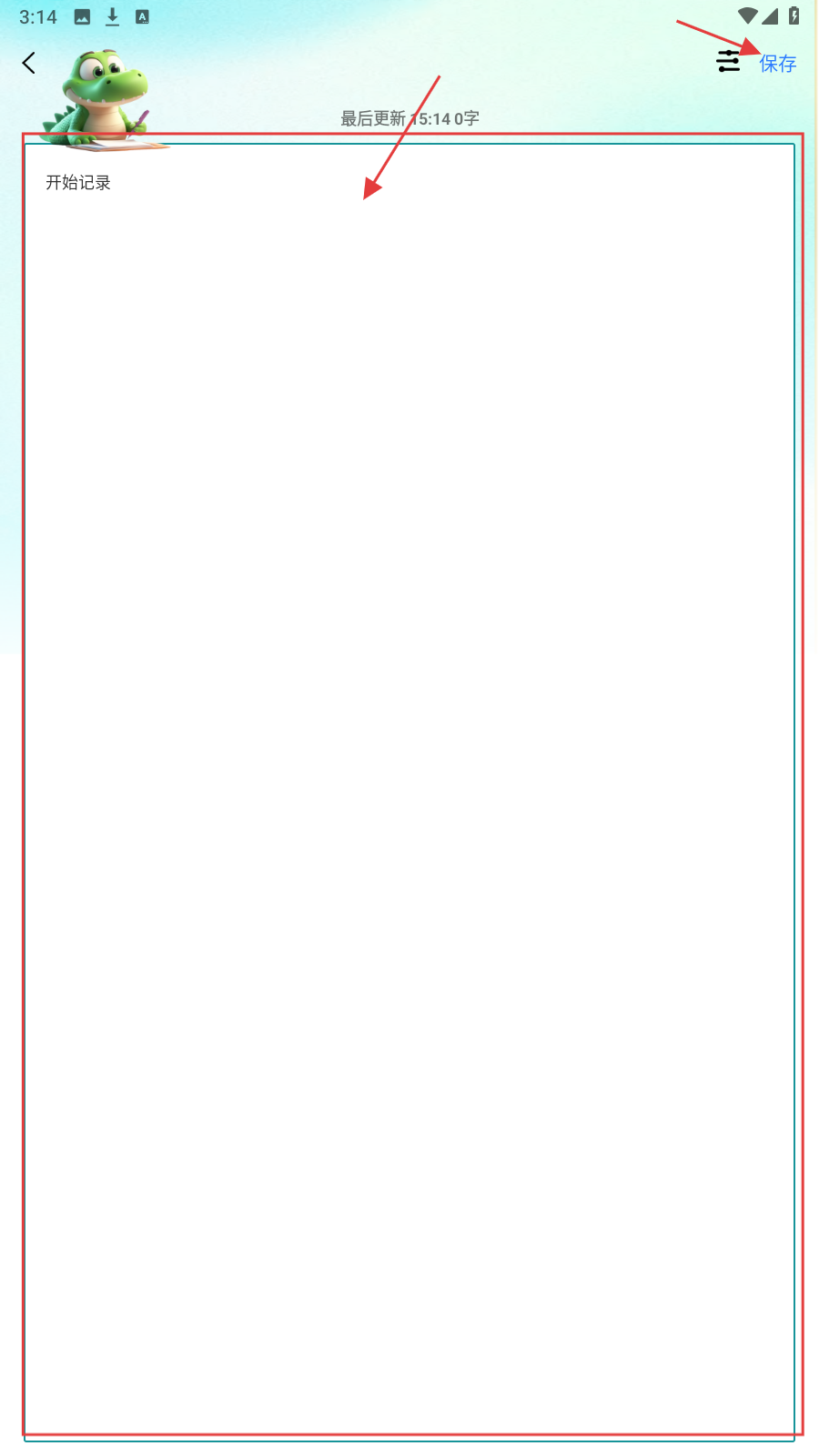 2、在编辑页输入内容后,点右上角【保存】,留存便签,方便回顾。