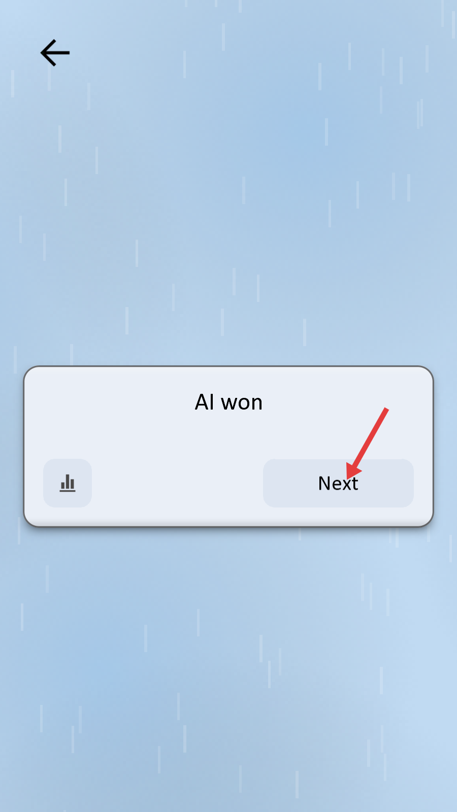 4、对局结束显示【AI-won】,点击【Next】按钮,进入下一轮,总结经验调整策略再战。