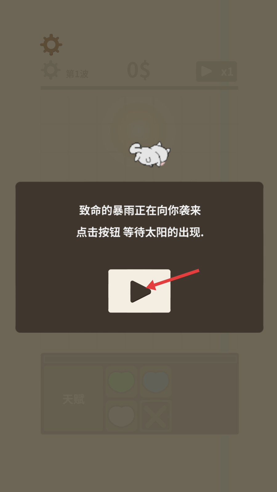1、遭遇【致命的暴雨】来袭,点击【播放按钮】启动流程,等待太阳降临开启战斗。