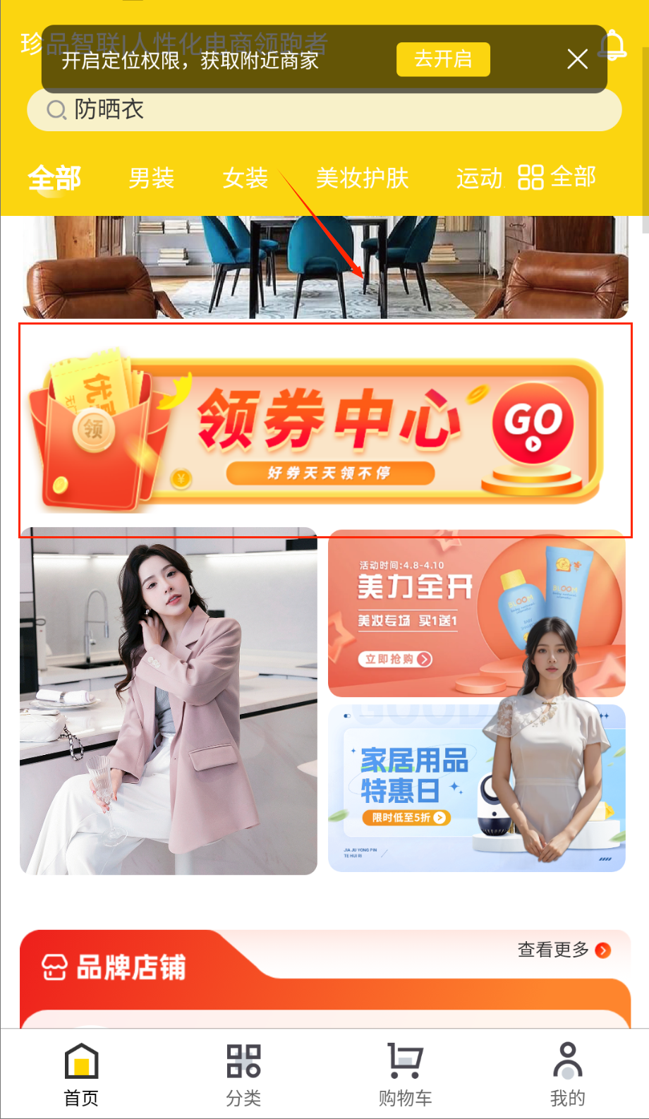 1、打开APP登录个人账户后在首页显眼位置找到优惠券中心入口并点击进入,浏览当前可供领取的各类优惠券及其使用条件和有效期信息。