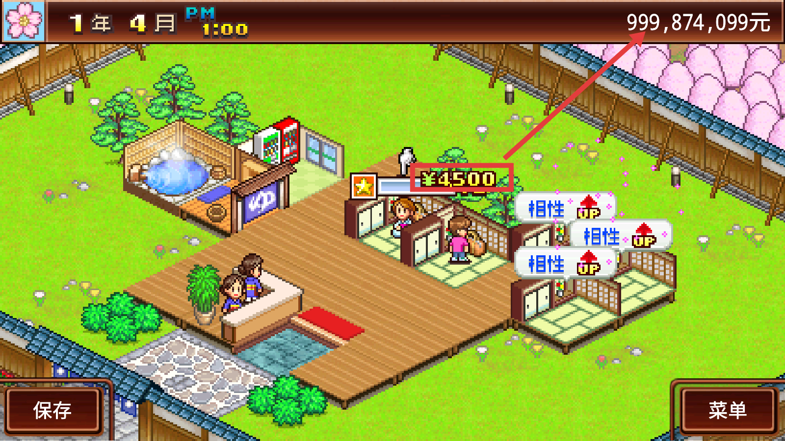 1、设施升级系统:可以不断扩建温泉设施和升级服务项目,从基础建设到高级装饰,逐步打造豪华度假村。