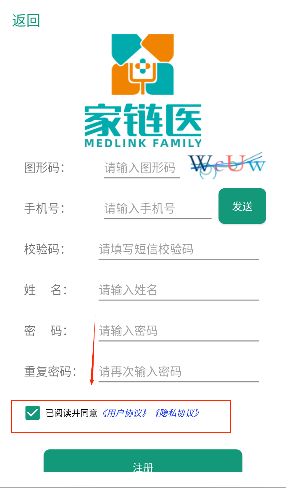 3、仔细阅读用户协议和隐私条款后勾选同意选项,同时点击绿色注册按钮就可以完成账户创建了。