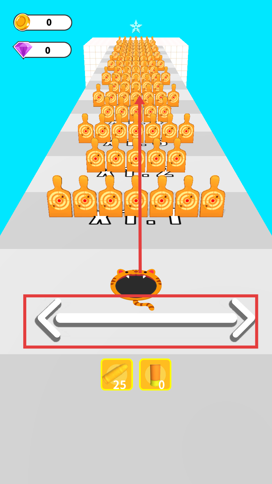 3、在靶场关卡,利用左右箭头调整吞噬口位置,对准靶群,高效发射子弹命中目标。
