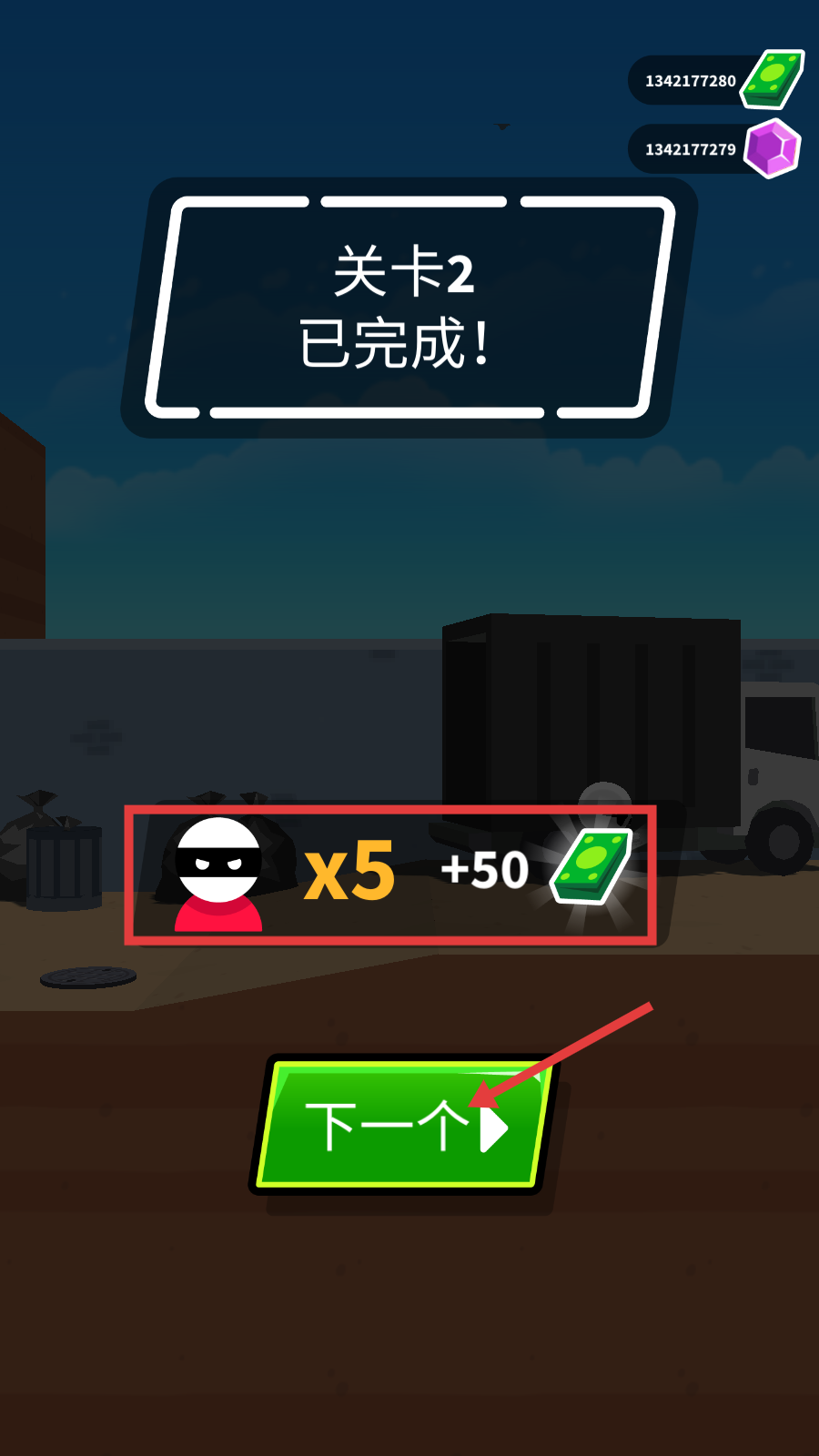 4、通关后点击【下一个】,继续挑战新关卡,积累奖励解锁内容。