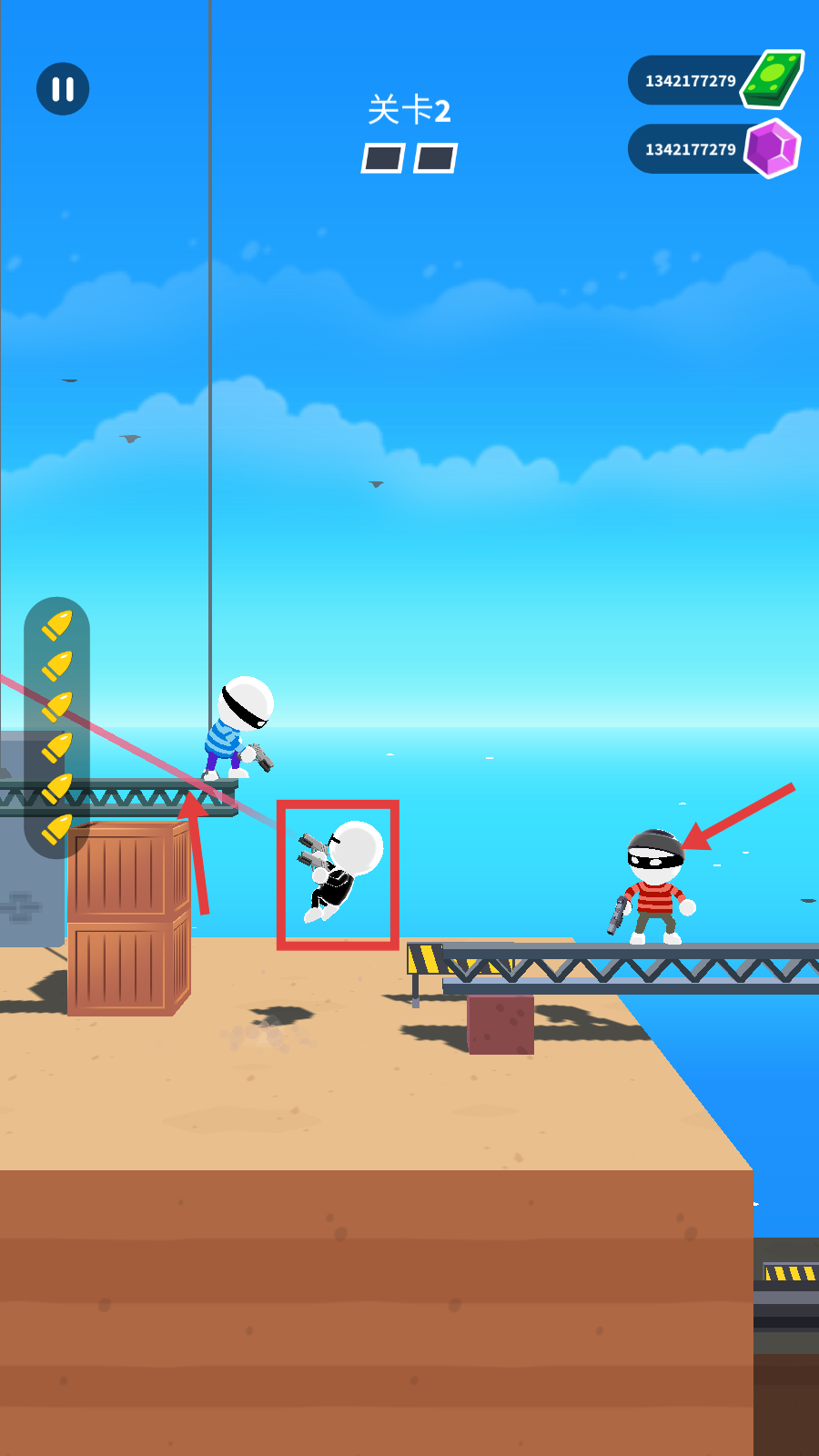 1、子弹时间机制:提供慢动作射击体验,让您精准控制射击角度和时机,增强策略感和成就感,享受紧张刺激的战斗节奏。