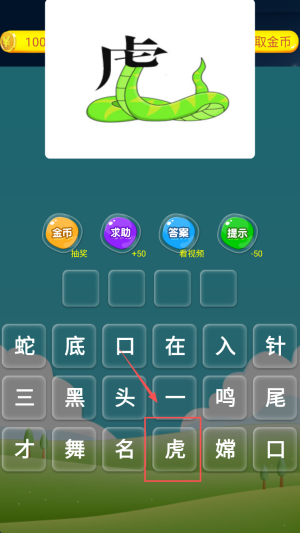 3、在首页选择“成语猜图”,根据图片提示输入正确成语,点击“取金币”领取奖励。