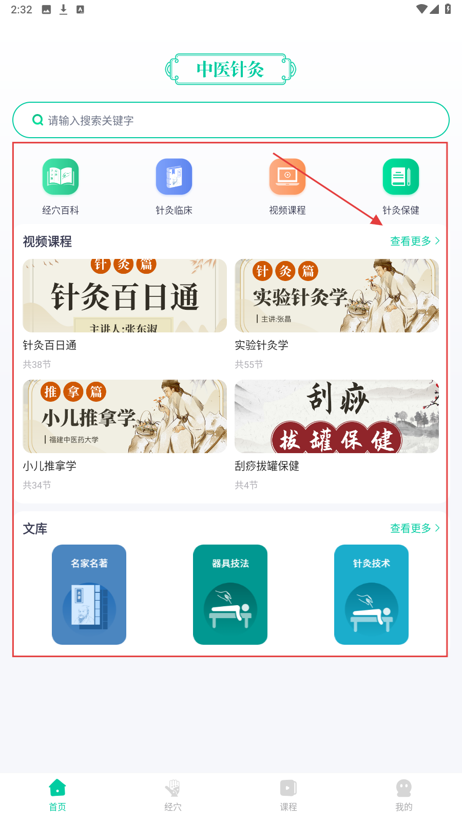 1、进入应用,选【经穴百科】【针灸临床】等,按需学中医针灸基础/临床知识。