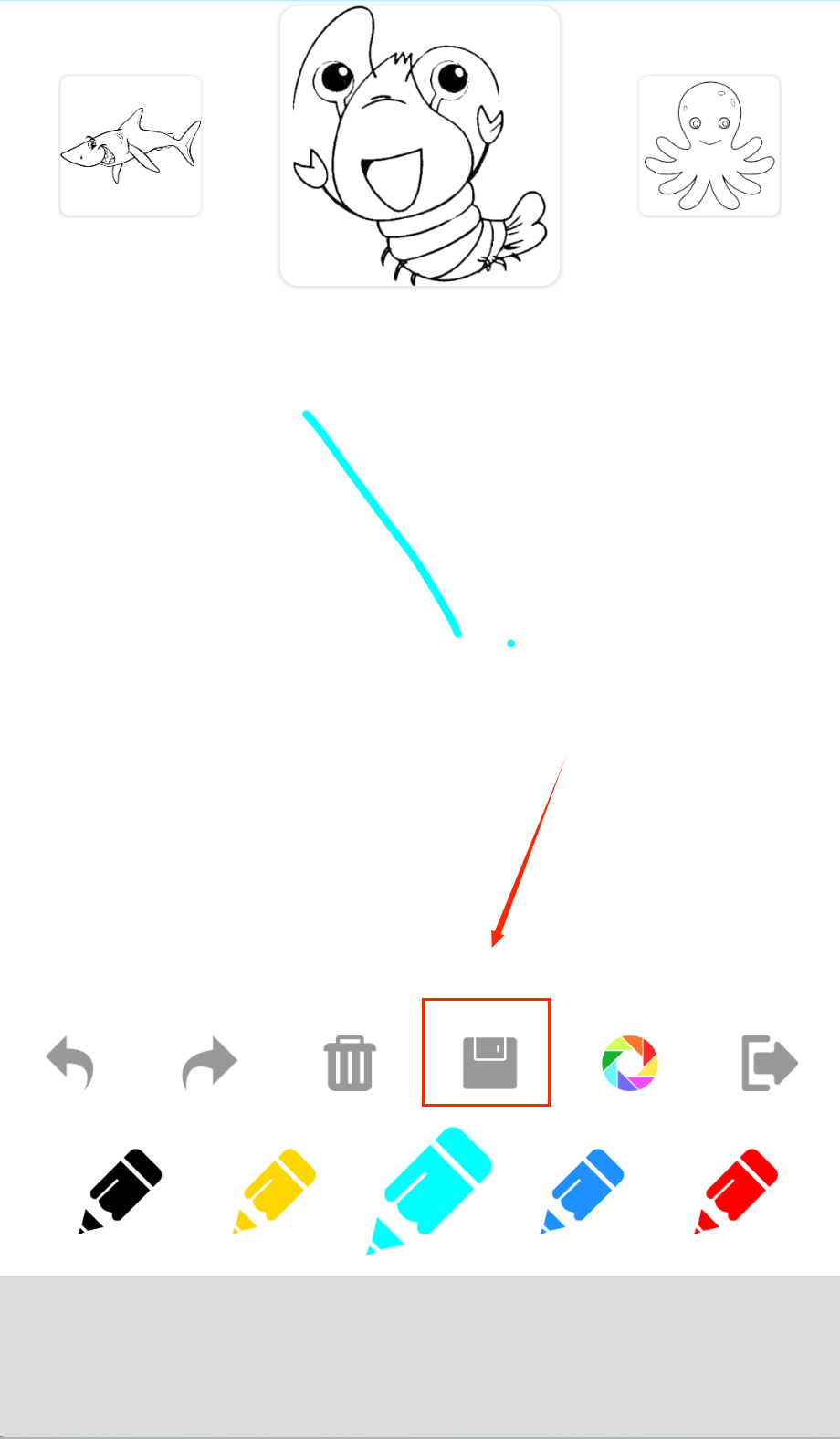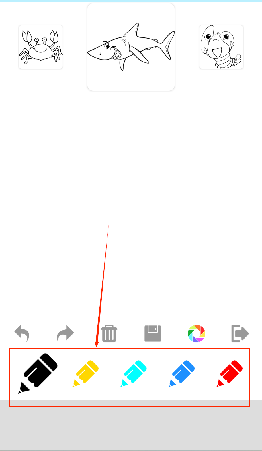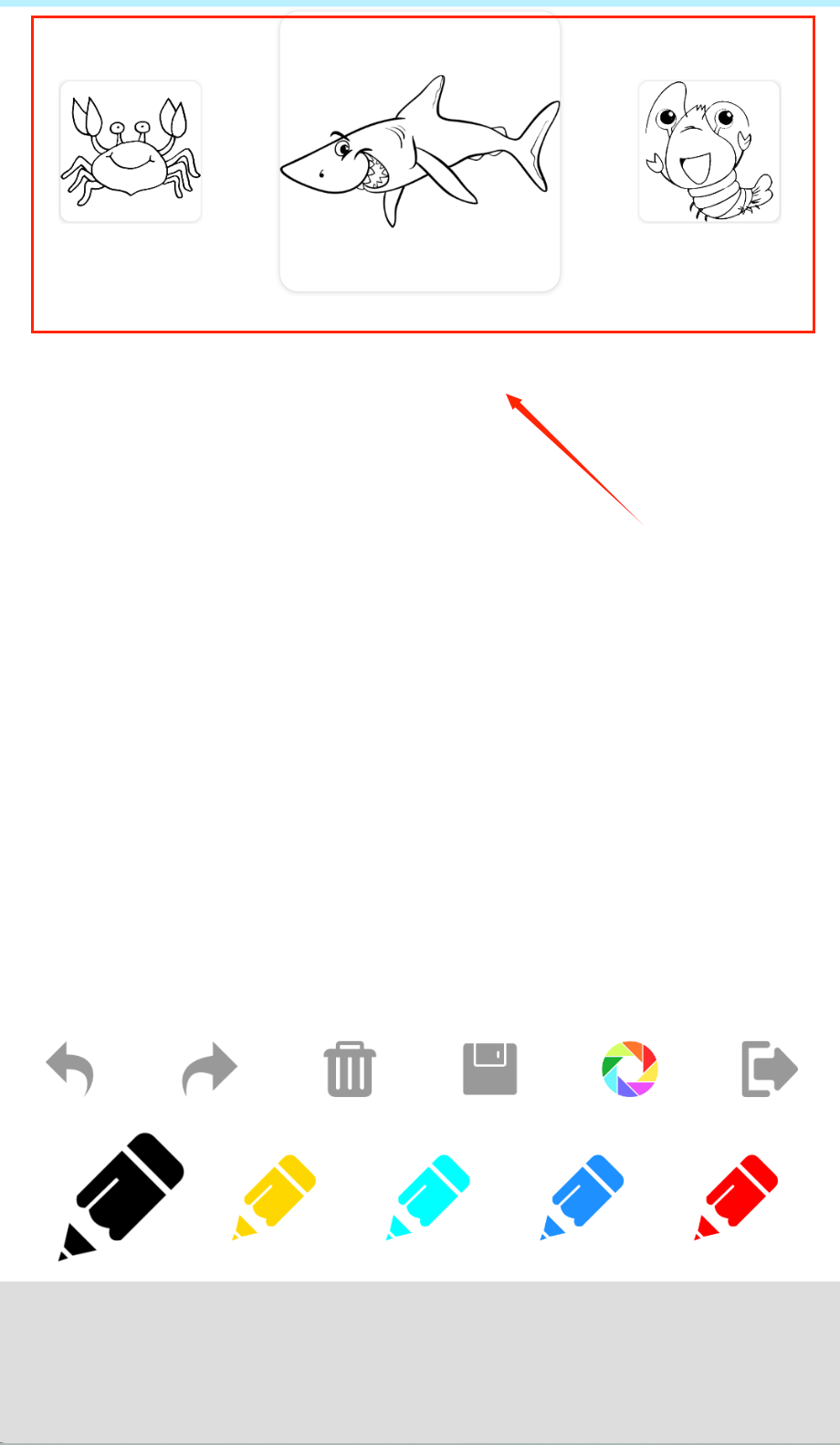2、在海洋动物图库中浏览海豚、鲸鱼等各种可爱海洋生物模板,选择孩子最喜欢的图案点击开始绘画。