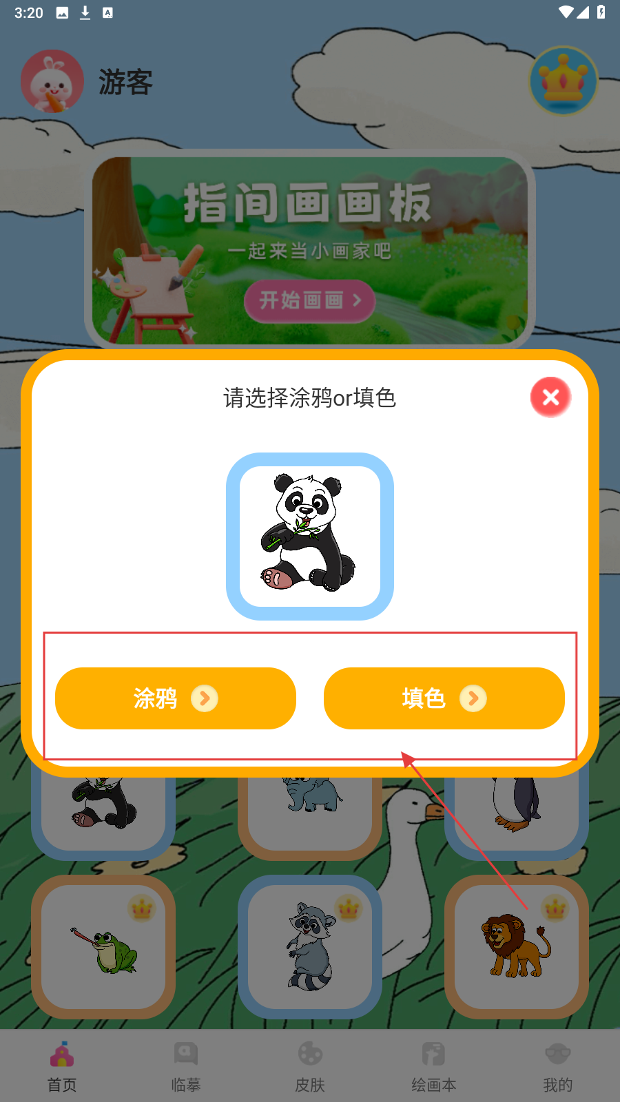 2、在【涂鸦填色】选图案(如熊猫),选【涂鸦】或【填色】模式。