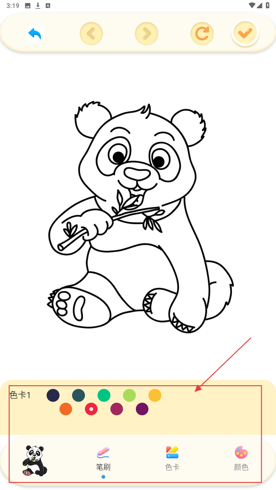 4、填色时切换【色卡】选颜色,给图案上色,完成作品。